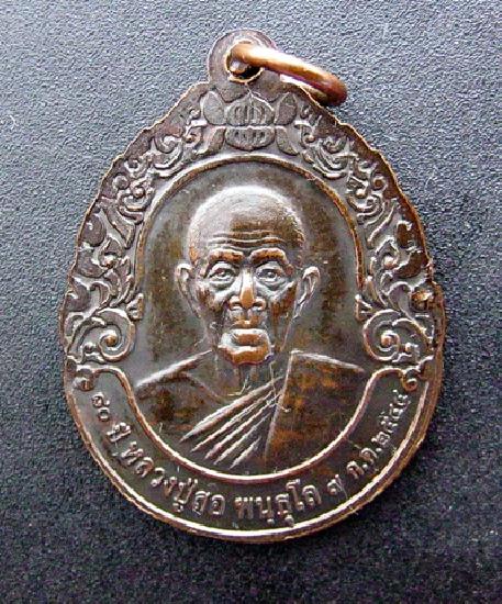 พระเหรียญ หลวงปู่สอ ครบอายู80ปีหลวงพ่อเจ็ดกษัตริย์ ปี2544 สวยเดิมNO.00054