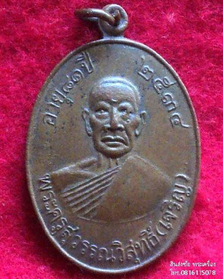 | เหรียญหลวงพ่อเจริญ ปภาโส ( พระครูสุวรรณวิสุทธิ์ ) วัดธัญญวารี(หนองนา) ต.ไร่รถ อ.ดอนเจดีย์ จ.สุพรรณบุรี ครบรอบ 81 ปี รุ่นเจริญสุข ปี 2534 พุทธคุณเด่นด้านโชคลาภ เมตตามหานิยม แคล้วคลาดปลอดภัย ประวัติหลวงพ่อเจริญ ปภาโส ( พระครูสุวรรณวิสุทธิ์ ) วัดธัญญวารี เดิมชื่อเจริญ เปรมรัตน์ เกิดที่ 1 กันยายน 2452 ณ.บ้านหลักแก้ว อ.วิเศษไชยชาญ จ.อ่างทอง เป็นบุตรนาย เหลี่ยม นางปาน เปรมรัตน์ ปี พ.ศ. 2468 บรรพชา ณวัดสำปะซิว อ.เมือง จ.สุพรรณบุรี วันที่ 9 เมษายน พ.ศ. 2472 อุปสมบท ณ.พัทธสีมาวัดลานช้าง อ.วิเศษไชยชาญ จ.อ่างทอง มีหลวงพ่อบุญ วัดสี่ร้อย เป็นพระอุปัชฌาย์ ได้รับฉายาว่า ปภาโส แล้วมาจำพรรษาวัดสุวรรณภูมิ อ.เมือง จ.สุพรรณบุรี เป็นศิษย์หลวงปู่โต๊ะ วัดลาดตาล พ.ศ.2476 ได้สร้างสำนักสงฆ์ทิพยวารี(วัดธัญญวารี) บ้านหนองนา ดอนเจดีย์ พ.ศ.2480 เป็นเจ้าอาวาสวัดทิพยวารี(วัดธัญญวารี) ได้พัฒนาเป็นวัดพัฒนาตัวอย่าง เป็นวัดดีเด่นจนเป็นวัดใหญ่ในสุพรรณ หลวงพ่อมรณภาพวันที่ 17 มกราคม พ.ศ. 2545 สิริอายุ 92 ปี |