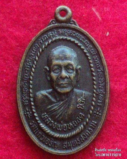 | เหรียญหลวงพ่อหยอด ชินวํโส(พระครูสุนทรธรรมกิจ)วัดแก้วเจริญ อ.อัมพวา สมุทรสงคราม หลังหลวงพ่อทอง สิริวณฺโณ(พระครูโสภณสิริคุณ)วัดเพลง ต.วัดเพลง อ.วัดเพลง จ.ราชบุรี ออกวัดศรัทธาราษฎร์ ต.วัดเพลง อ.วัดเพลง จ.ราชบุรี ปี 2534 ที่ระลึกงานผูกพัทธสีมา เนื้อทองแดง ประวัติหลวงพ่อหยอด เดิมชื่อ สุนทร ชุติมาศ เกิดวันที่ 16 พฤษภาคม พ.ศ. 2454 ณ บริเวณตลาดบางน้อย (ตรงข้ามศาลเจ้าพ่อโรงโขน) ต.ตาหลวง อ.ดำเนินสะดวก จ.ราชบุรี อุปสมบทวันที่ 8 พฤษภาคม พ.ศ.2474 ที่วัดแก้วเจริญ มีหลวงปู่ใจ (พระครูสุทธิสาร)วัดเสด็จ เป็นพระอุปัชฌาย์ พ.ศ.2484 เป็นเจ้าอาวาสวัดแก้วเจริญ และรักษาการแทนเจ้าคณะตำบลเหมืองใหม่ และมรณภาพวันที่ 12 มีนาคม พ.ศ.2541 รวมสิริอายุ 86 ปี ประวัติหลวงพ่อทอง สิริวณฺโณ(พระครูโสภณสิริคุณ)อดีตเจ้าคณะอำเภอวัดเพลง และอดีตเจ้าอาวาสวัดเพลง เดิมชื่อทอง บุญมีคงมา เกิดปี พ.ศ.2458 ปี พ.ศ.2490 เป็นเจ้าอาวาสวัดเพลง อ.วัดเพลง จ.ราชบุรี เป็นผู้เริ่มก่อตั้งโรงพยาบาลวัดเพลง |
