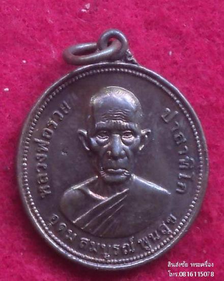 | เหรียญหลวงพ่อรวย ปาสาทิโก(พระมงคลสิทธาจารย์) วัดตะโก ต.ดอนหญ้านาง อ.ภาชี อยุธยา รุ่นอุดม สมบูรณ์ พูนสุข ปี 2555 เนื้อทองแดง พุทธคุณด้านแคล้วคลาดนิรันตราย และเมตตา มหานิยมโชคลาภ ประวัติหลวงพ่อรวย ปาสาทิโก (พระมงคลสิทธาจารย์) วัดตะโก เดิมชื่อรวย ศรฤทธิ์ เกิดเมื่อ พ.ศ. 2464 ณ บ้านตะโก ต.ดอนหญ้านาง อ.ภาชี จ.อยุธยาเป็นบุตรคนที่ 6 ในจำนวนพี่น้อง 8 คน (ชาย 3 หญิง 5) ของนาย มี นางสินลา ศรฤทธิ์ อาชีพทำนา อุปสมบทปี พ.ศ. 2484 ที่วัดตะโก อ.ภาชี อยุธยา มีหลวงพ่อชื่น (พระครูสุนทรธรรมนิวิฐ) วัดภาชี เป็นพระอุปัชฌาย์ ได้รับนามฉายา ปาสาทิโก เป็นศิษย์หลวงพ่อชื่น วัดภาชี หลวงพ่อแจ่ม วัดแดงเหนือ พ.ศ.2492 เป็นเจ้าอาวาสวัดตะโก พ.ศ.2496 เป็นเจ้าคณะตำบลดอนหญ้านาง เป็นพระครูสุนทรธรรมนิวิฐ และพระมงคลสิทธาจารย์ตามลำดับ มรณภาพวันที่ 19 กรกฎาคม พ.ศ.2560 สิริอายุรวม 96 ปี 76 พรรษา |
